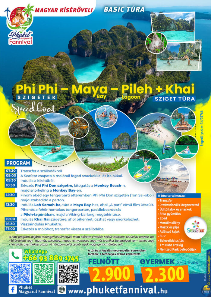 - Indulás a kikötőből. Érkezés Phi Phi Don szigetre, látogatás a Monkey Beach-n, majd snorkeling a Monkey Bay-en.