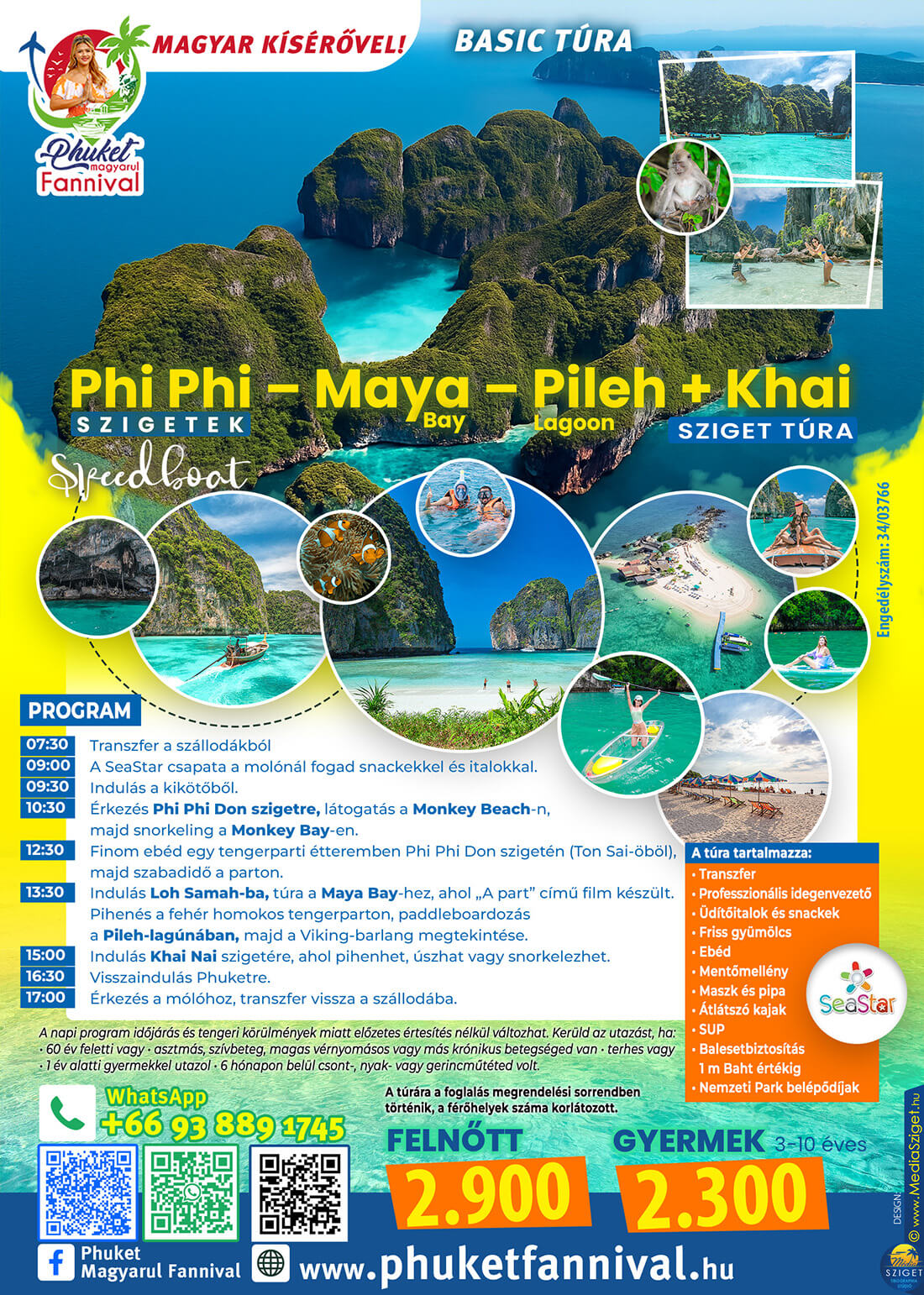 A túra tartalmazza: • Transzfer • Professzionális idegenvezető • Üdítőitalok és snackek • Friss gyümölcs • Ebéd • Mentőmellény • Maszk és pipa • Átlátszó kajak • SUP • Balesetbiztosítás 1 m Baht értékig • Nemzeti Park belépődíjak