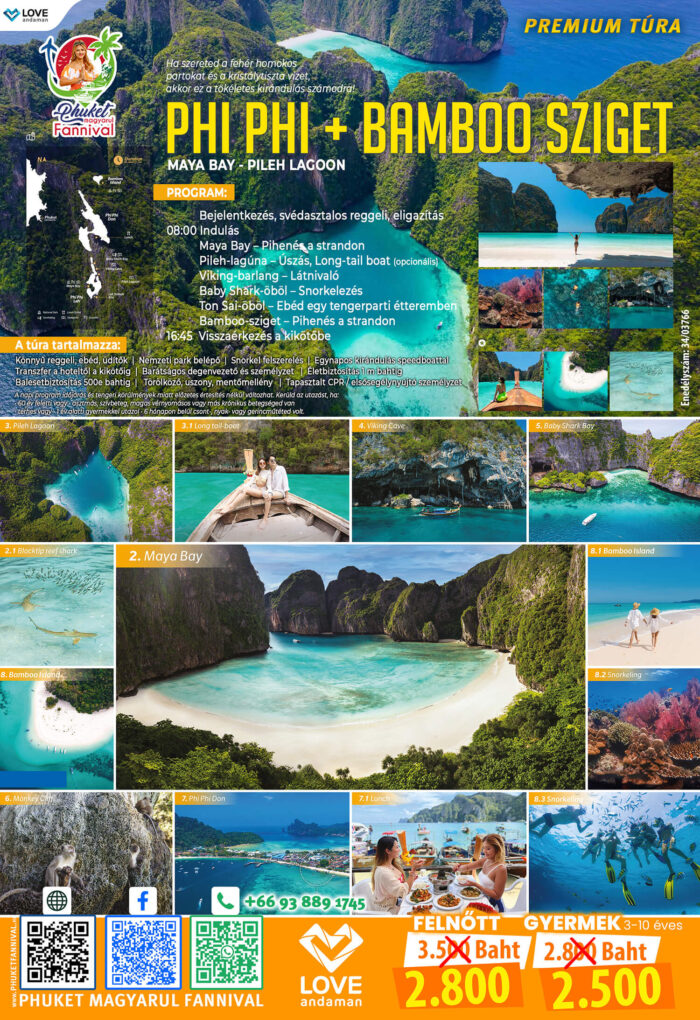 A túra tartalmazza: Könnyű reggeli, ebéd, üdítők | Nemzeti park belépő | Snorkel felszerelés | Egynapos kirándulás speedboattal Transzfer a hoteltől a kikötőig | Barátságos degenvezető és személyzet | Életbiztosítás 1 m bahtig Balesetbiztosítás 500e bahtig | Törölköző, uszony, mentőmellény | Tapasztalt CPR / elsősegélynyújtó személyzet