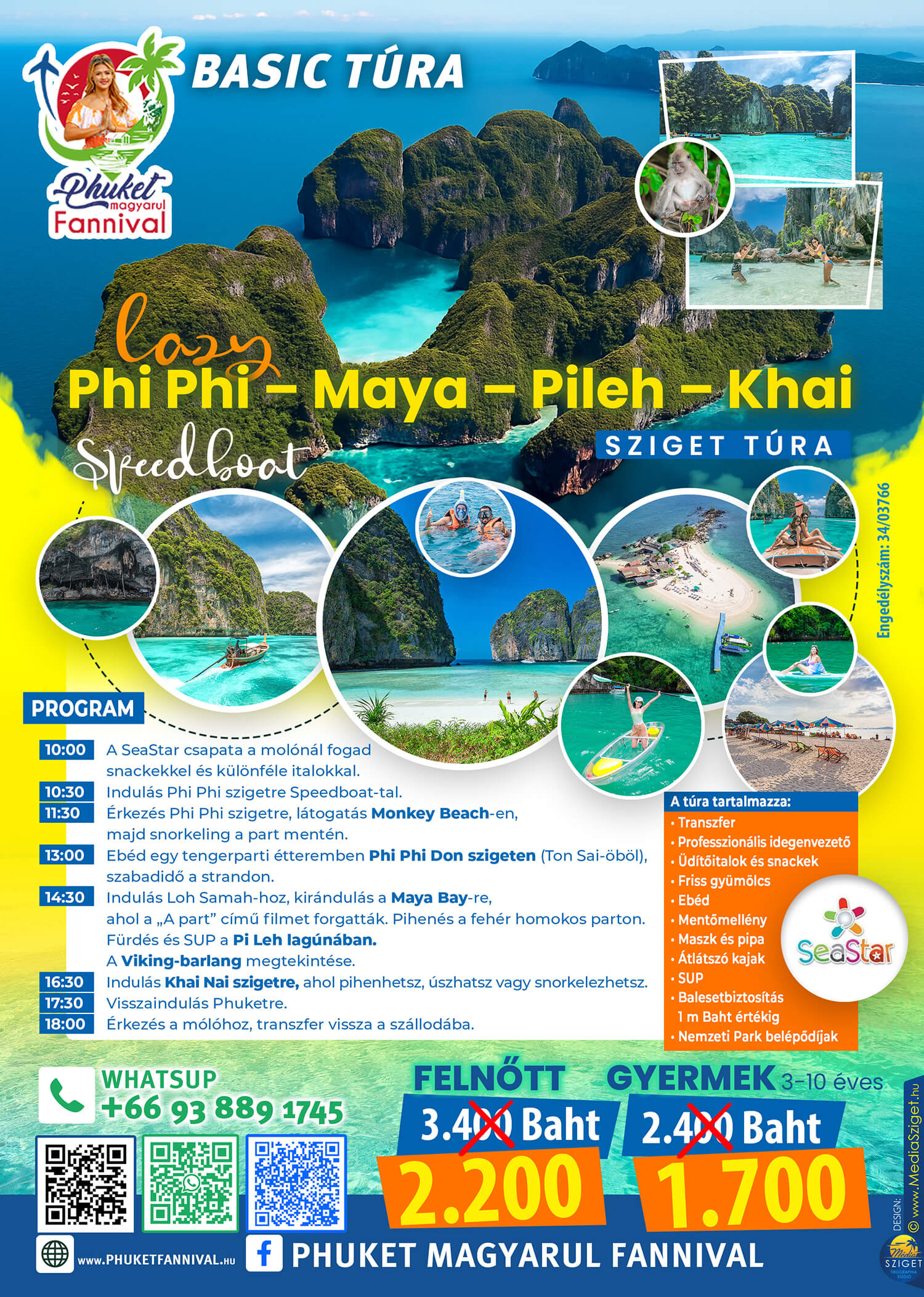 A túra tartalmazza: • Transzfer • Professzionális idegenvezető • Üdítőitalok és snackek • Friss gyümölcs • Ebéd • Mentőmellény • Maszk és pipa • Átlátszó kajak • SUP • Balesetbiztosítás 1 m Baht értékig • Nemzeti Park belépődíjak