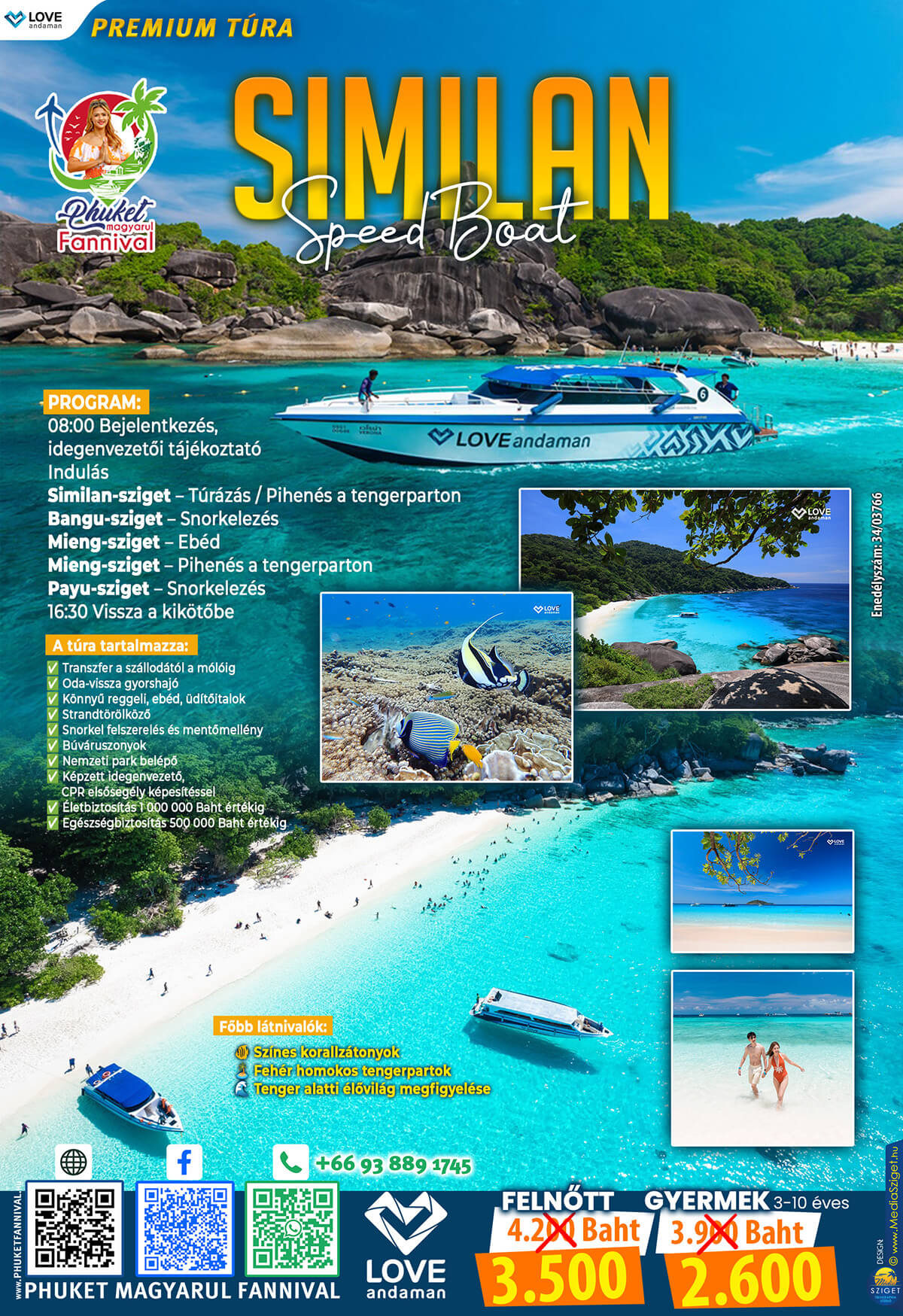 Fedezd fel a Similan-szigetek varázslatos világát egy kényelmes és élményekben gazdag prémium gyorshajós kiránduláson. Kristálytiszta víz, sznorkelezés és felejthetetlen tengerparti pihenés vár minden résztvevőre.