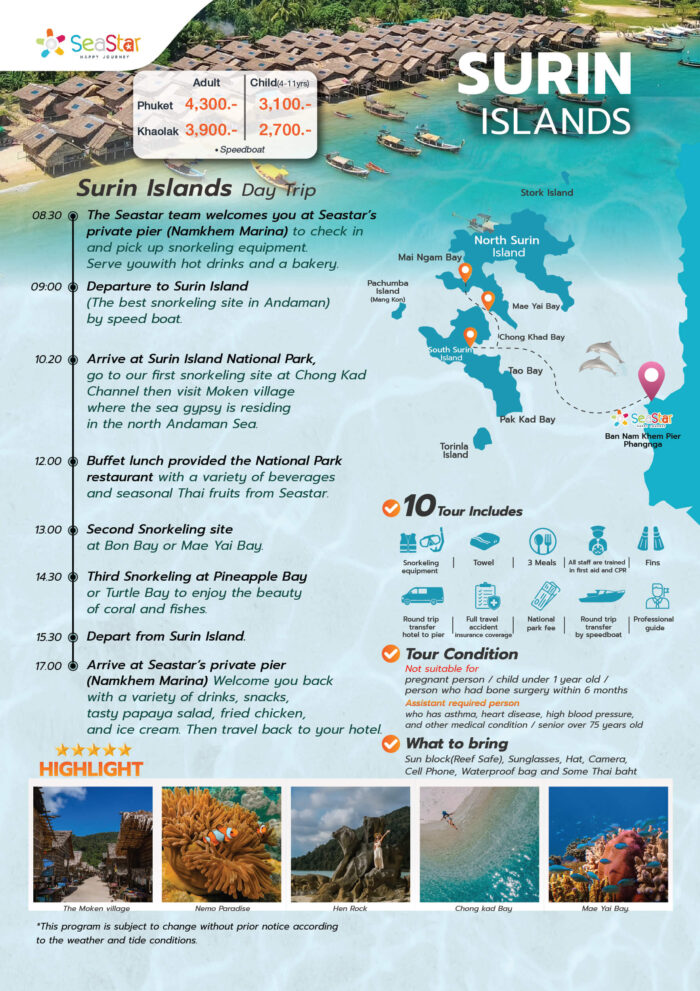 • 09:00 – Indulás a Surin-szigetre (az Andamán-tenger legjobb sznorkelhelyszíne) motorcsónakkal.