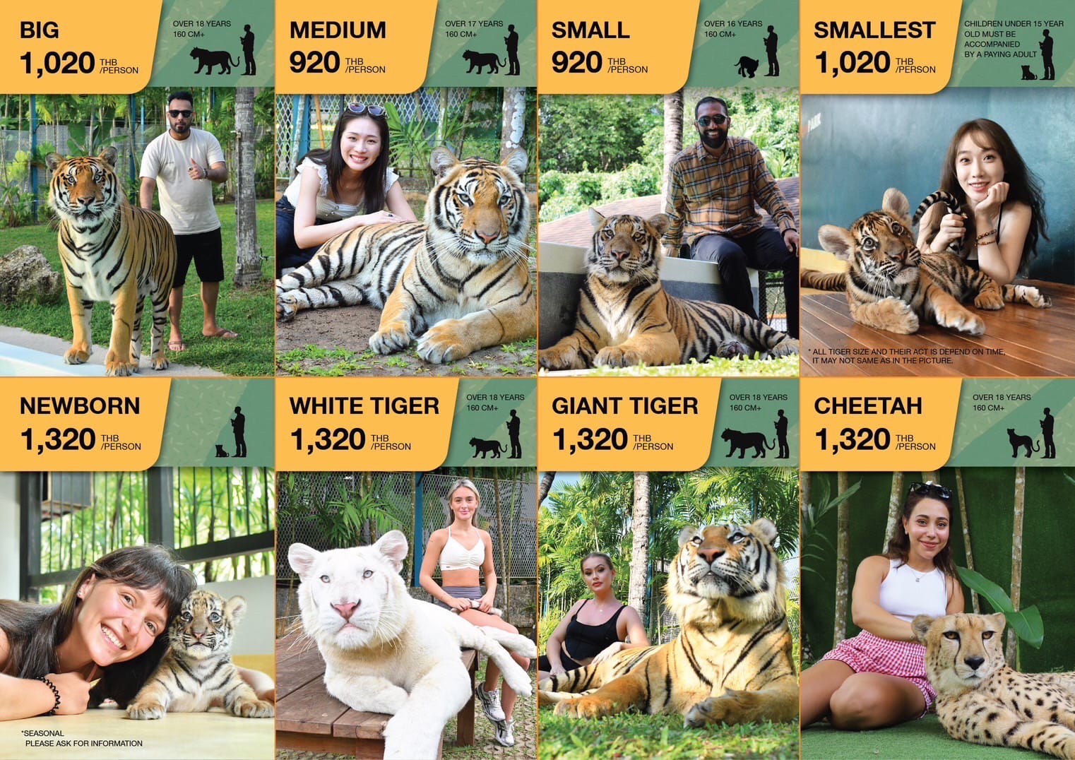 Itt testközelből találkozhatsz a tigrisekkel, simogathatod őket, és lenyűgöző fotókat készíthetsz velük – akár a hatalmas „óriás tigrissel”, a hófehér tigrissel vagy a bájos kistigrisekkel. A park természetes, tiszta környezetben vár, 100%-ban altatás nélkül, profi gondozókkal és biztonságos élménnyel.